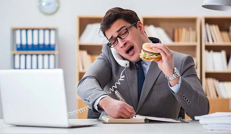 - کنار گذاشتن وعده های غذایی: هنگامی که به طور هم زمان ده کار را با هم انجام می دهید، خوردن یک وعده غذایی سالم نمی تواند در لیست اولویت ها قرار گیرد. ممکن است خودتان را بخاطر اینکه دیر کرده اید، ناهار نخورید و یا از صبحانه صرف نظر کنید زیرا لیست کارهای شما خیلی زیاد است.